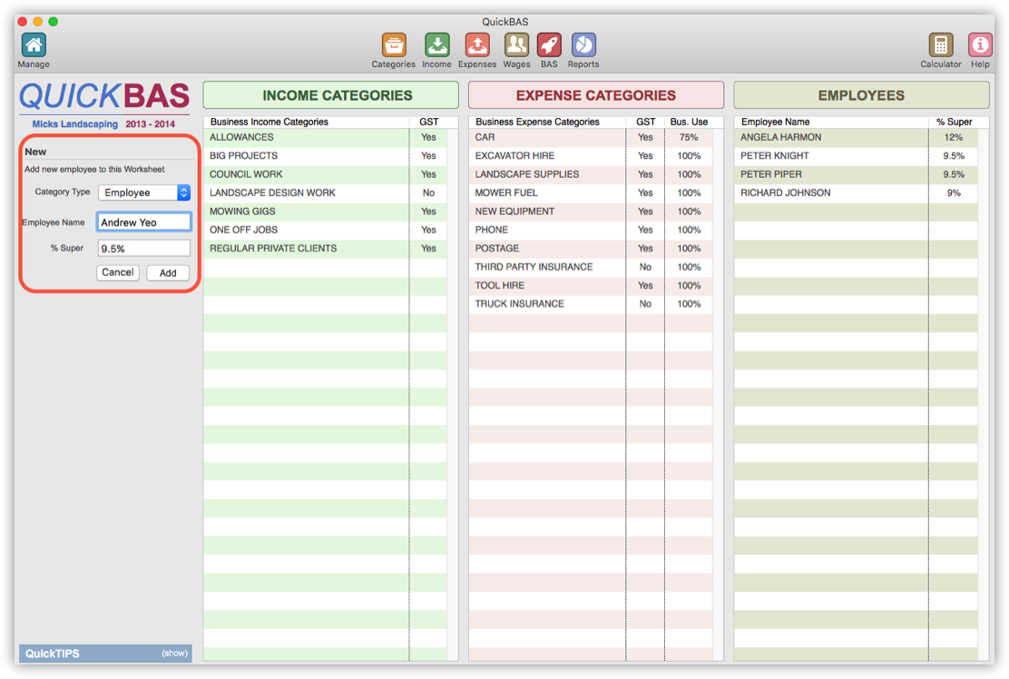- You can choose to use a default Superannuation percentage, or leave it blank